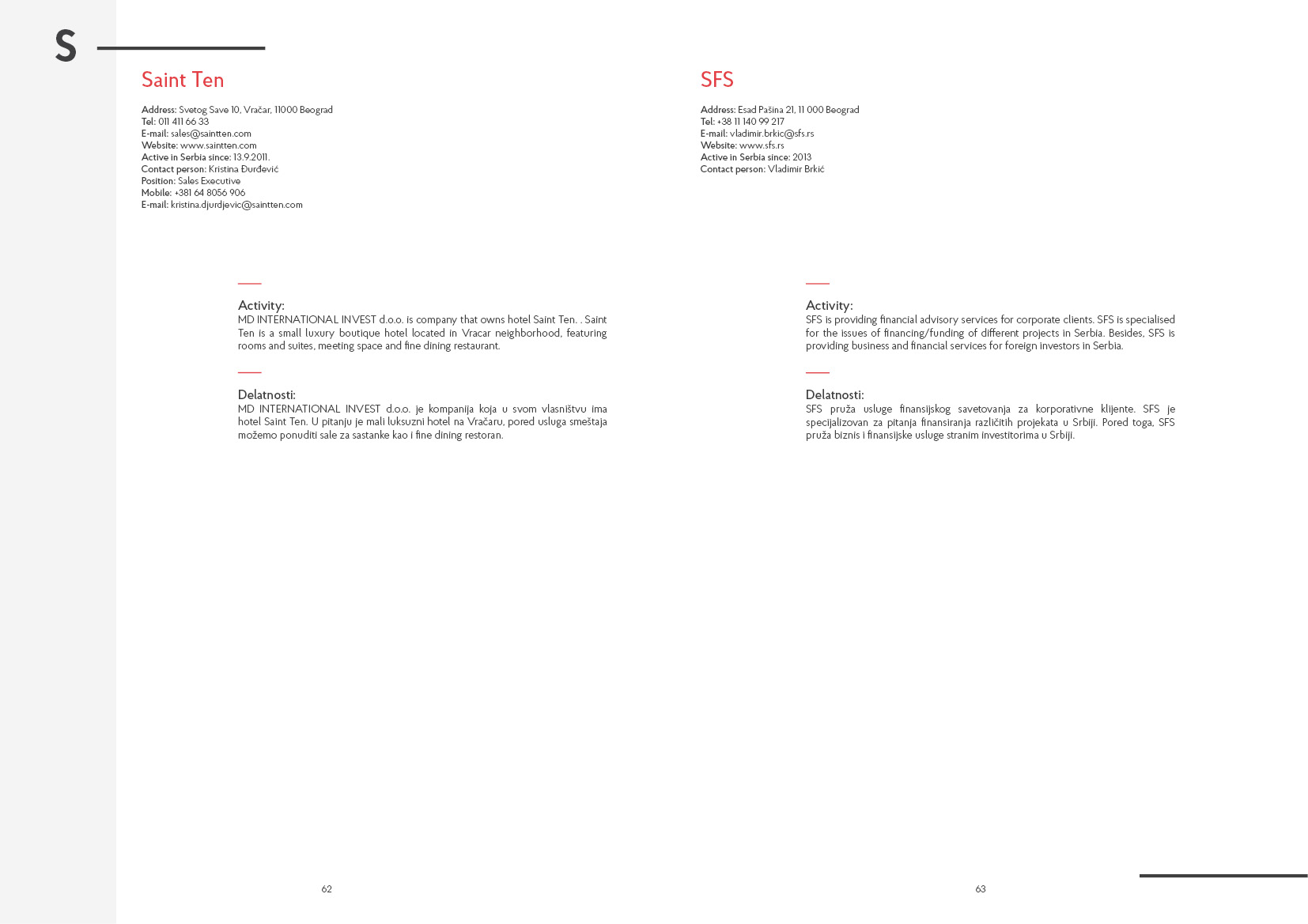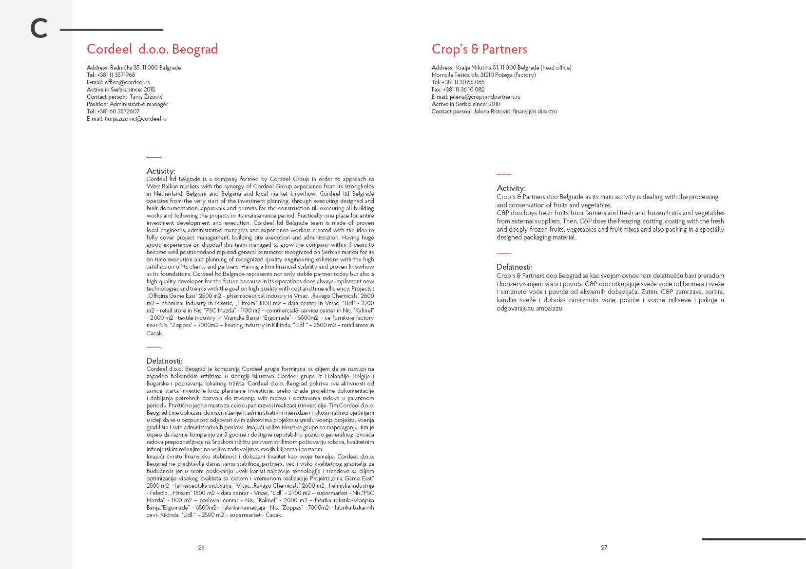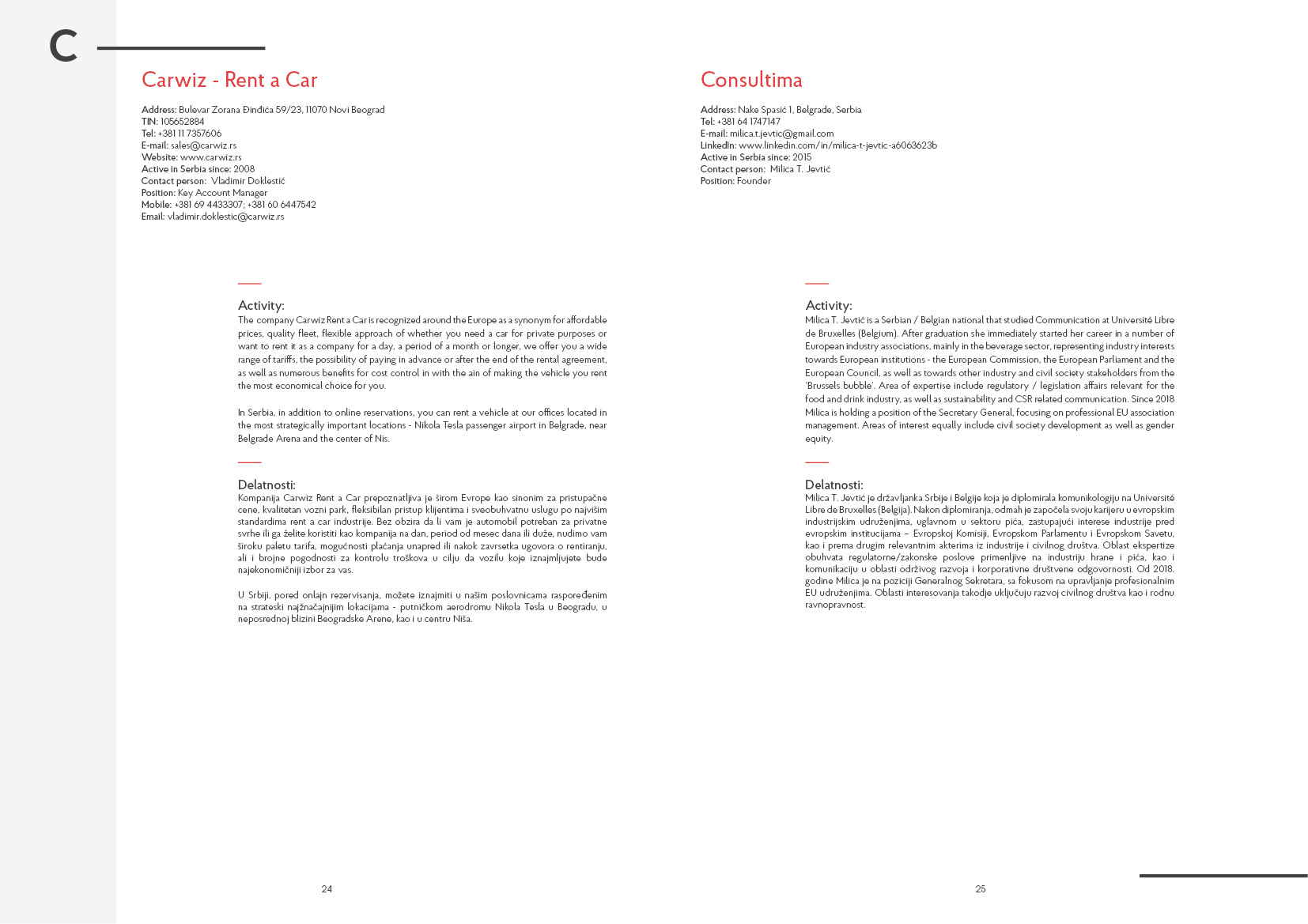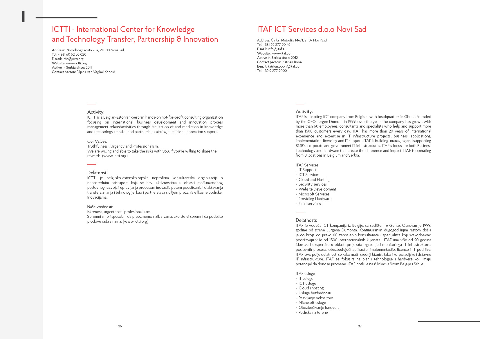 - Supporting organisations, working on activities with Serbia in various fields: economic, transport, social, educational, tourism etc…